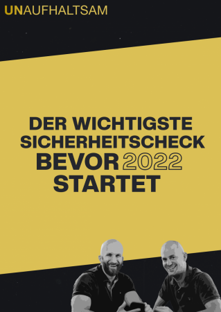 Sicher dir jetzt komplett kostenfrei das neue PDF zum Thema “Der wichtigste Sicherheitscheck bevor 2022 startet”. In dieser PDF befinden sich die Keylearnings aus der Episode für dich zusammengefasst.